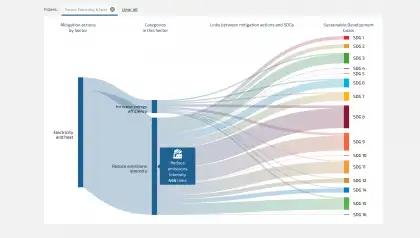 Das SCAN-tool (SDG Climate Action Nexus tool) visualisiert den Einfluss einzelner Klimaschutzmaßnahmen auf die 17 Klimaschutzziele der Vereinten Nationen.